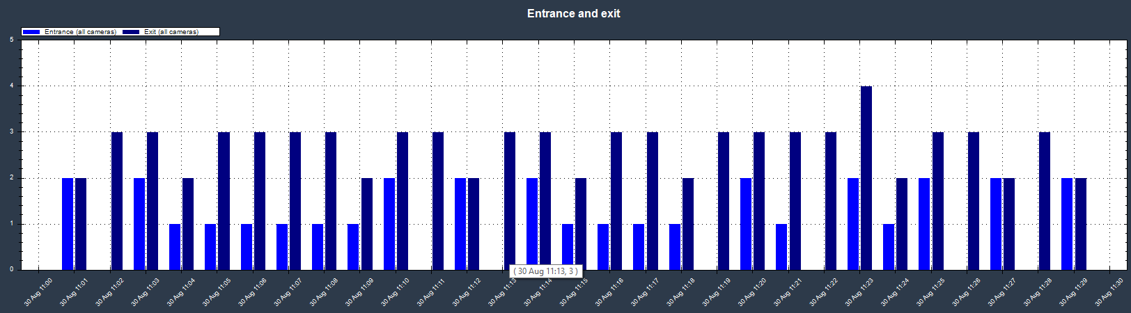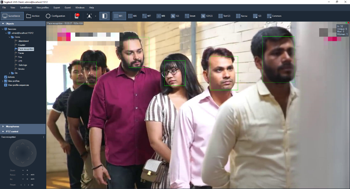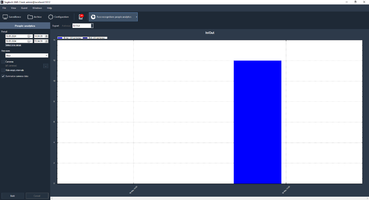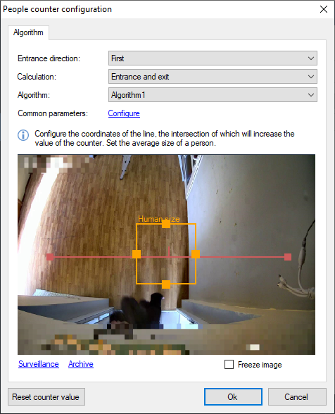 - People counting module. Allows you to get and analyze data about the number of people who entered and left the controlled zone over a certain period of time.
