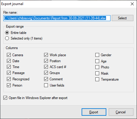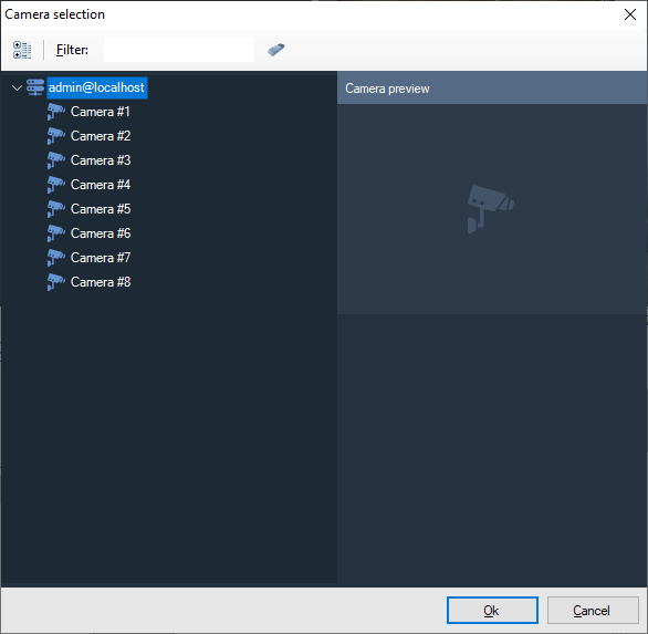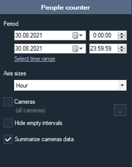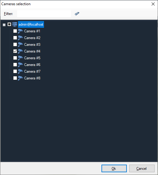 select the required cameras: select the "Cameras" checkbox, go to the camera selection window (button to the right of the checkbox
