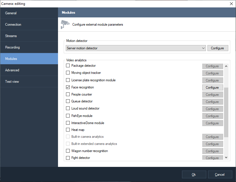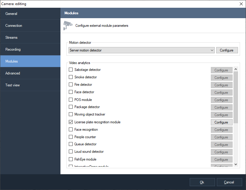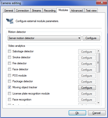 Please note that the modules work in conjunction with the server motion detector, so the latter must also be enabled.