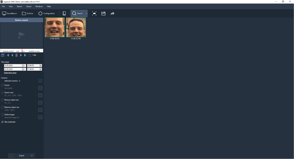 3) If necessary, select the required cameras (by default, all cameras are searched);