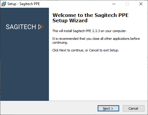 To start installing the product, you need to run the file SagitechPPESetup.exe. After initializing the installation wizard, the Installation wizard window will appear. Go through all the steps of the wizard as shown in the pictures below.