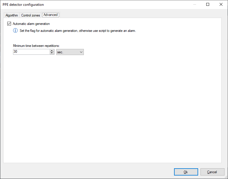 In the settings of the module, there are 3 tabs "Algorithm ", "Control zones", "Advanced".