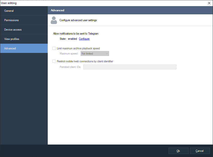 In the user settings, go to the "Advanced" tab and click the "Configure" button.