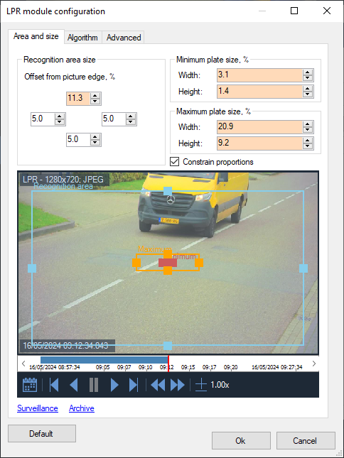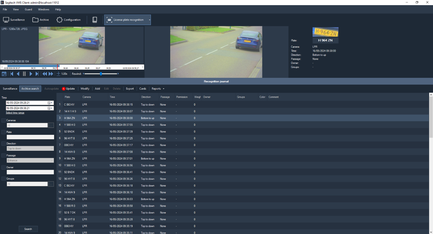 License plate recognition module. Detects and recognizes car license plates in the video stream. Determines the direction of travel and the facts of entry/exit's. Allows you to maintain a database of numbers with the ability to link numbers to owners and combine them into groups. Allows you to intercept numbers from the list. Supports searching for numbers in the archive by attributes and exporting search results.