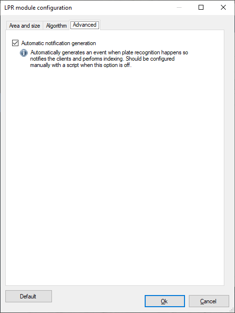 The default action for different modules may be different – this is not always an alert generation. For example, when a face is detected, it will be recorded with its coordinates and time stamp in the archive, as well as its illumination on the screen of the operator of the video surveillance system. For more information, please refer to the relevant section of this manual.
