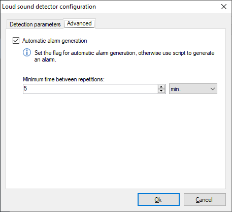 Loud sound detection module. Allows you to detect the presence of a loud sound in the camera's audio stream and notify the operator about it.