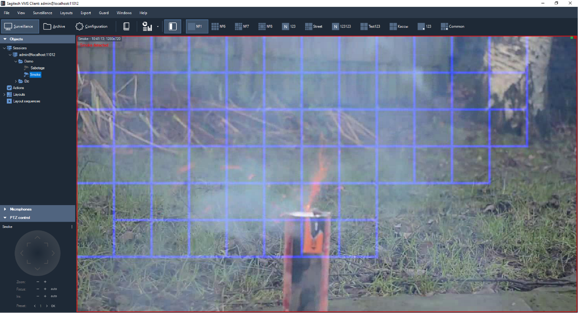 If you do not need to generate an alert, you can disable the corresponding flag. In this case, the message about smoke detection will still be displayed on top of the camera's video stream in surveillance mode.