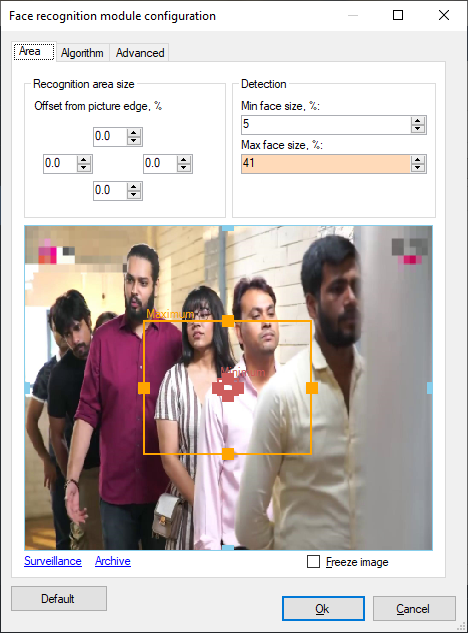 To enable the module, select the Face Detector flag on the modules tab of the camera settings window.
