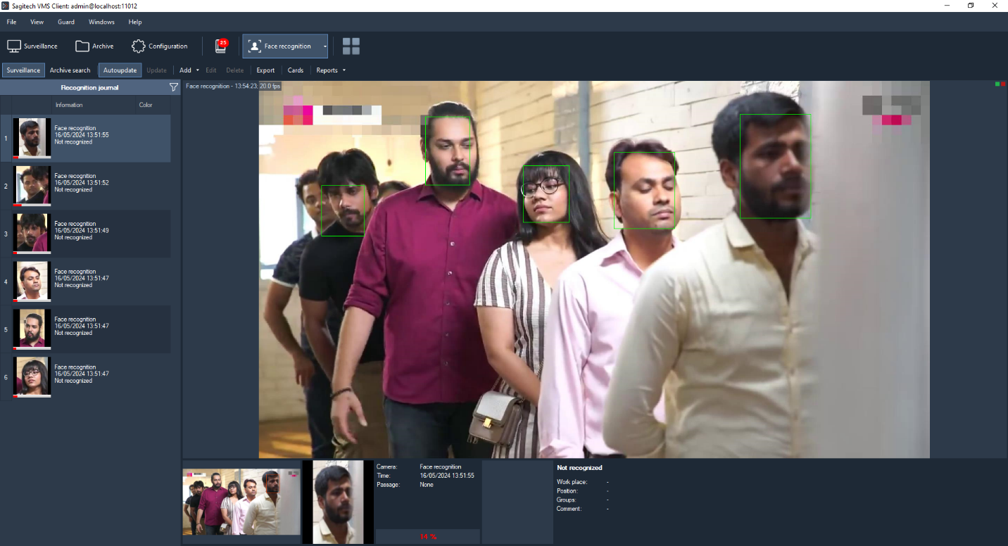 The module automatically selects faces from the video stream, saving them to the archive for further selection.