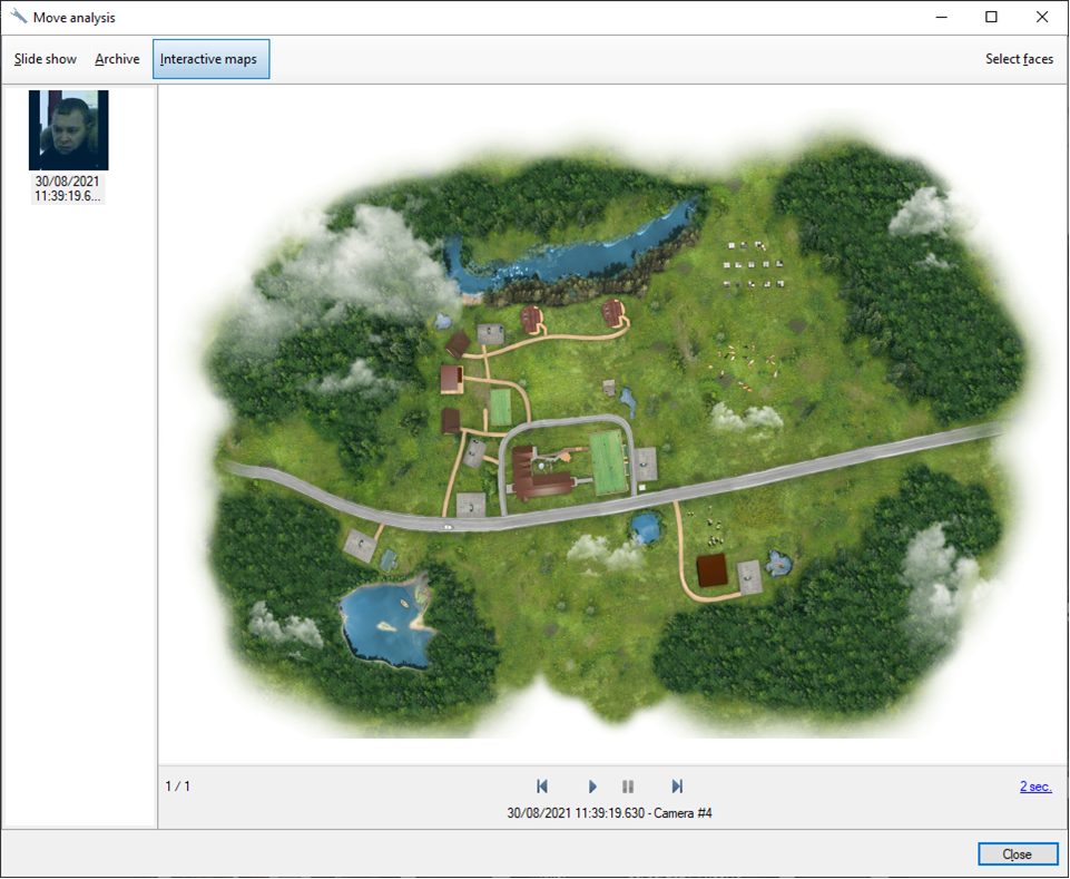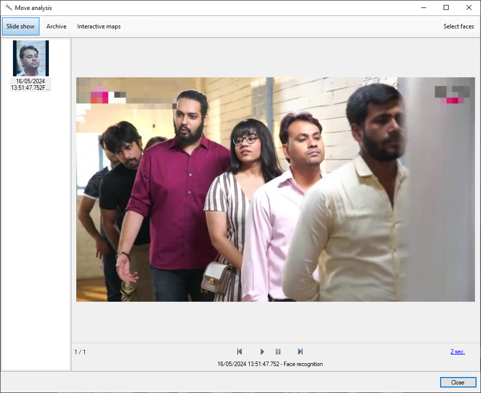 The detected faces will be displayed on the right side of the screen as a list of images. Select the desired face to quickly view the archive on the left side of the screen. Use the context menu to export the face image.
