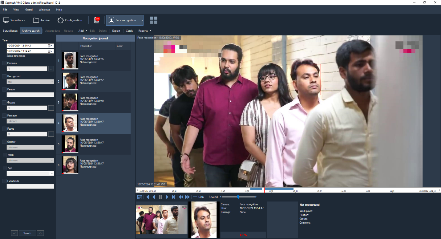 The module automatically selects faces from the video stream, saving them to the archive for further selection.