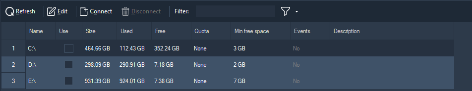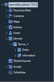 In the Enterprise edition, the "Servers" section has been added to the object tree. The "Disks" and "Information" sections are located in the parent branch of a particular server.