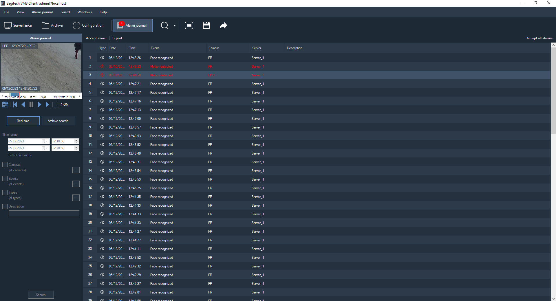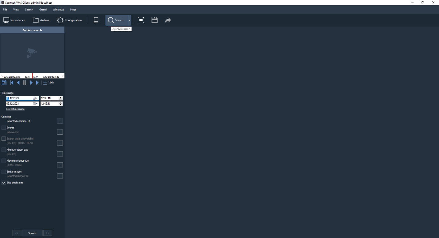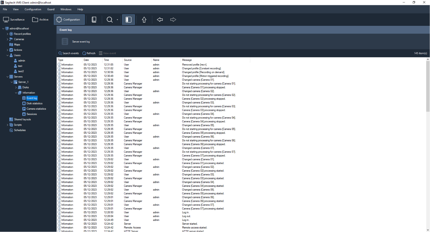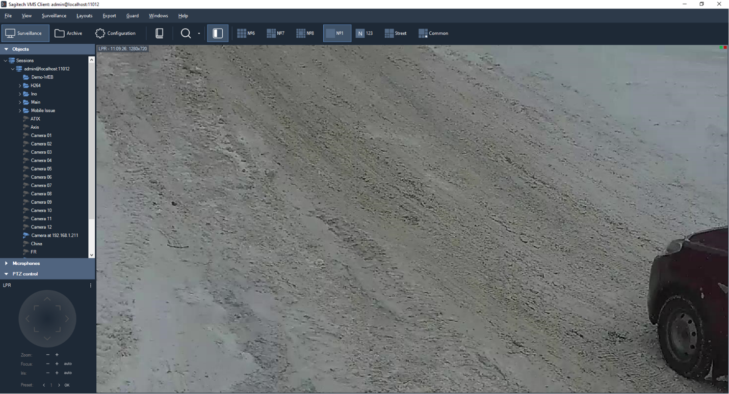 The second logical component is Sagitech VMS Client. It is an application that allows not only to watch a video from cameras in real-time mode and in an archive-mode, but also to control the work of the server (to set up its parameters).