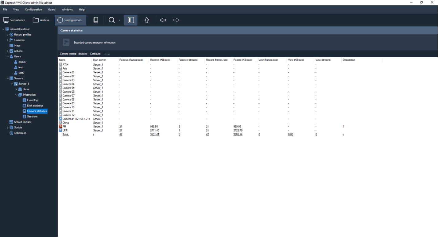 Activated – the amount of activated cameras ("Deactivate the camera" is not checked in the camera settings in Sagitech VMS Client).