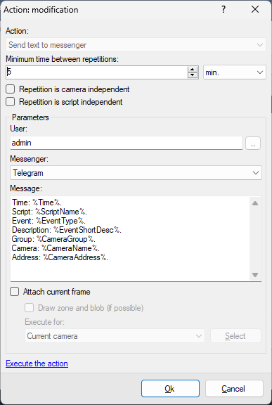 To do tasks (sending SMS, E-mail, an execution of an outside application and etc.) according to a condition (an appearance of a movement, a loss of connection with a camera and etc.).
