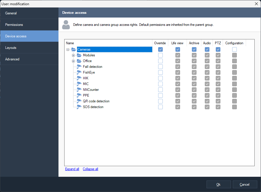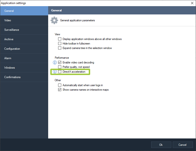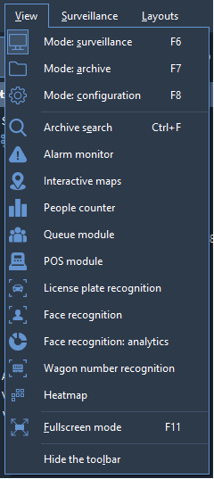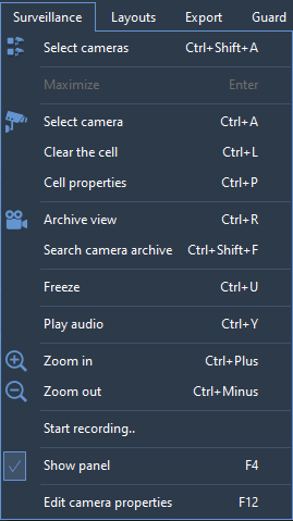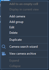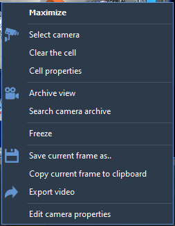 To expand the camera cell to full screen, use the appropriate item from the context menu or press Enter. A double-click reversal of the LMB is also available.