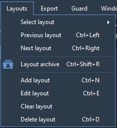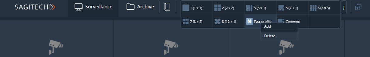 Layouts are available at the top of the screen. These layouts are not linked to the Sagitech Client.