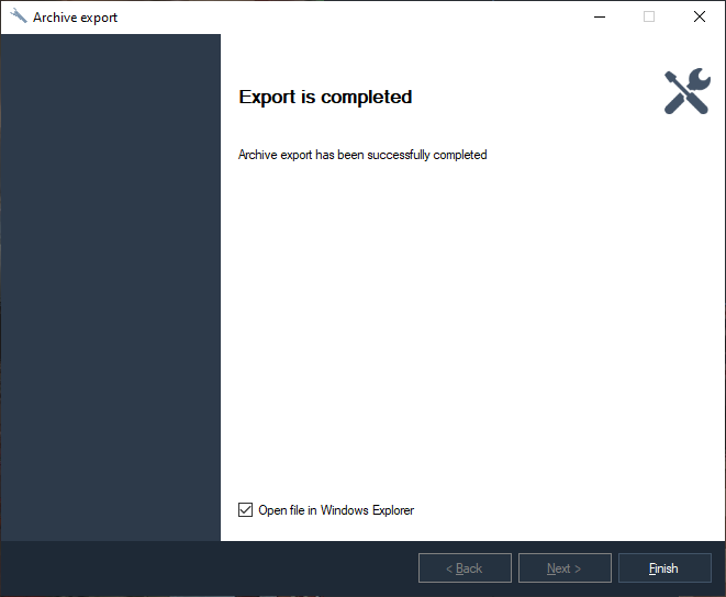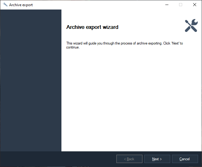 Archive export is available if the user has the appropriate rights in the "Configuration"-"Users" section.