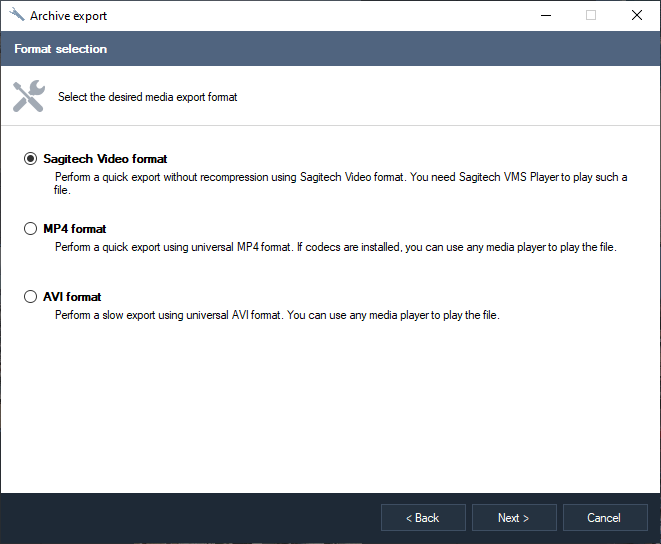 To convert video data that has been saved in the archive into standard video formats and a quick conversion into the format Sagitech Video.