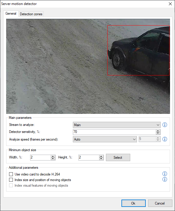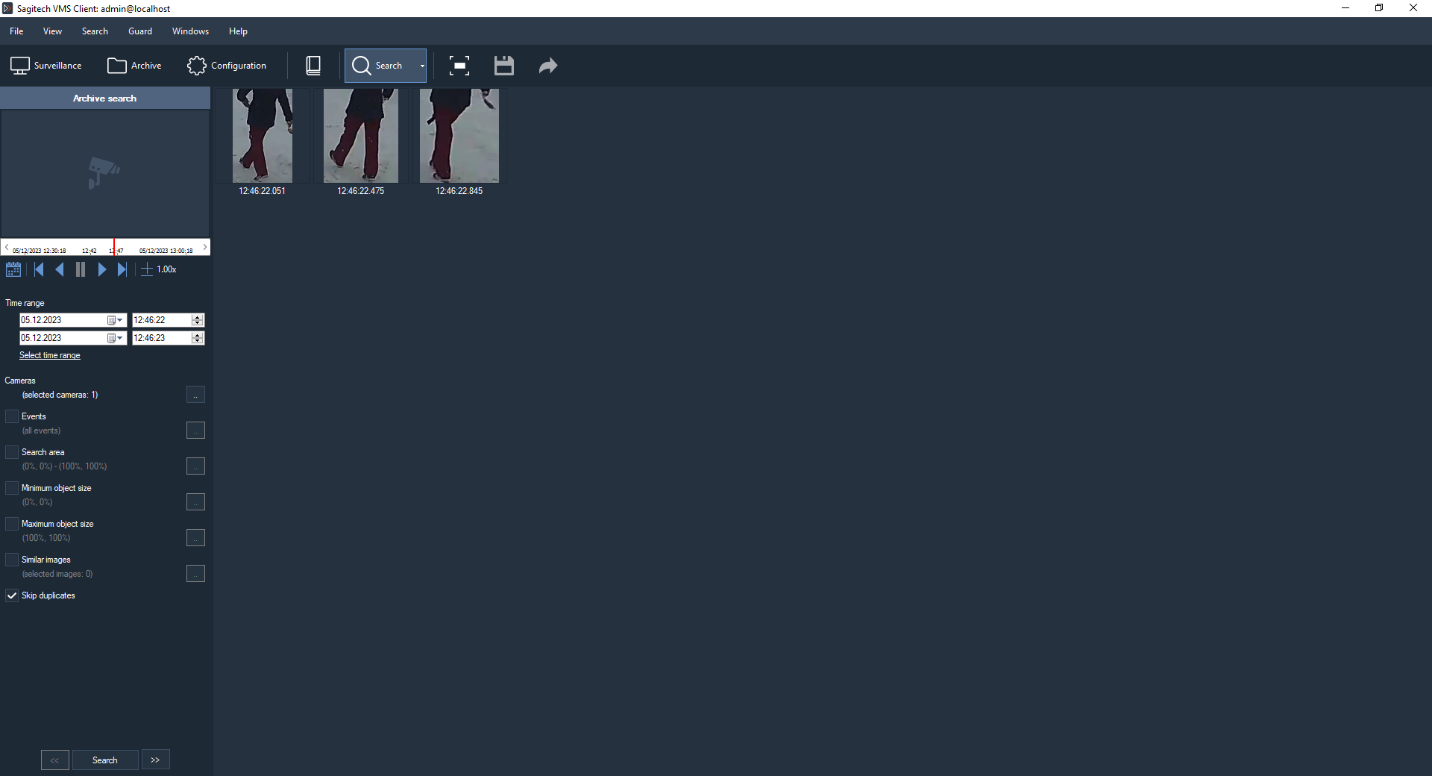 To carry out intellectual search among data that is recorded in the archive using the following filters: search area, minimal/maximum size of an object, visual characteristics of an object.