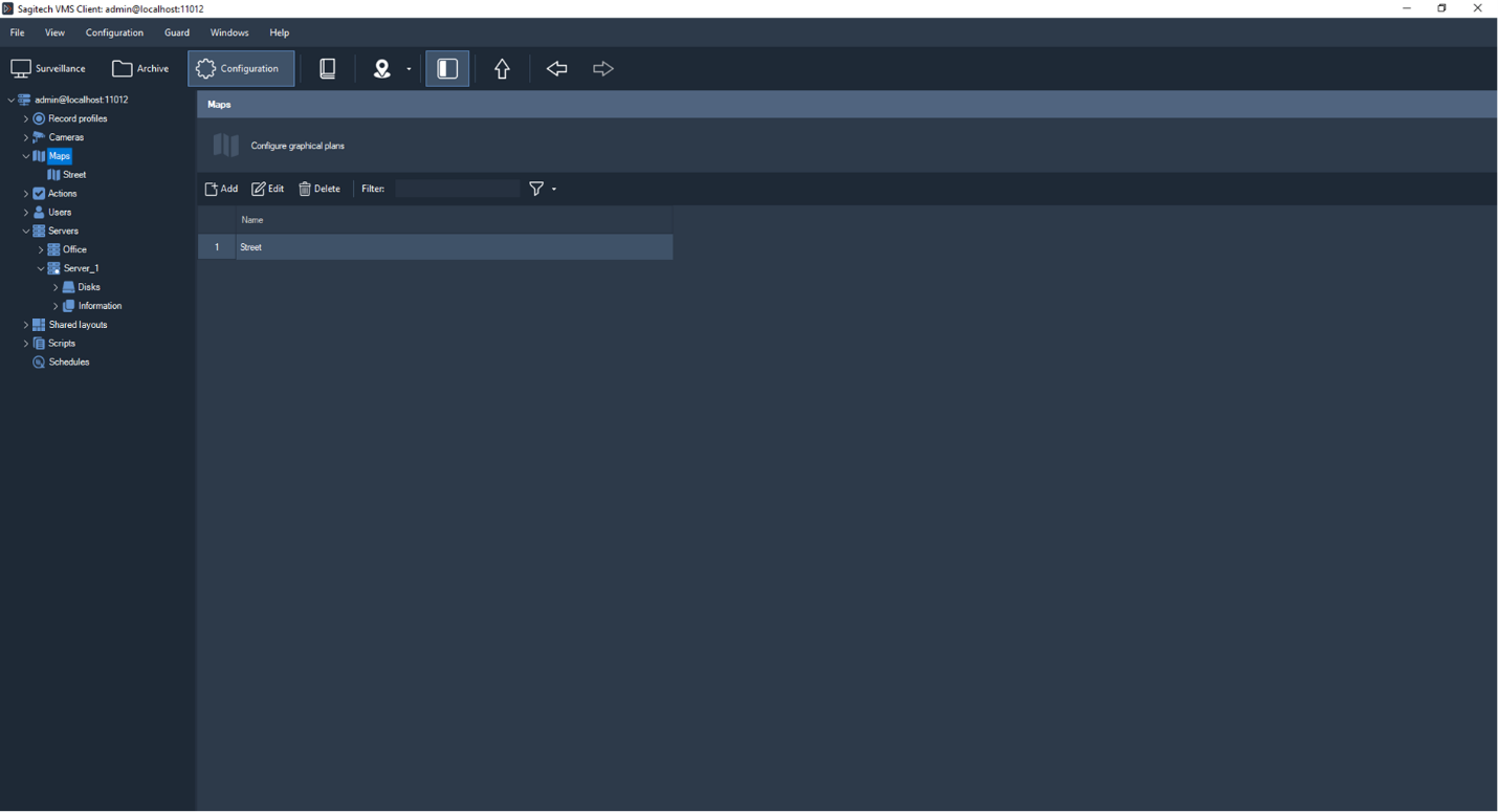 In this window, you can add, delete, edit and filter maps. To add a map and go to the edit window, click the "Add" button.