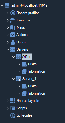 The object tree has been changed in this revision. In the Standard and Professional editions, the "Disks" and "Information" sections are located in the parent branch of objects and contain information for the current server, see the image below.