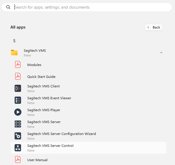 Fig. 11.1.1 Starting of Sagitech VMS Server control