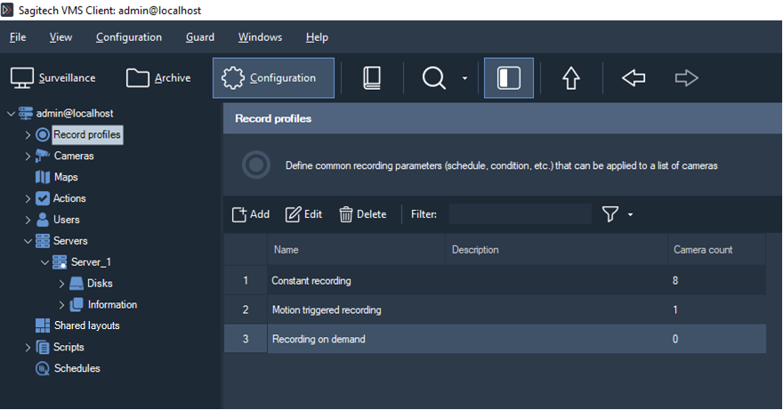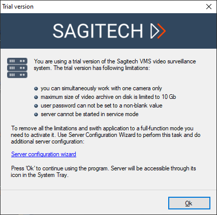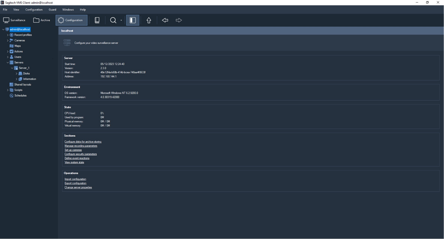 Sagitech VMS is built on the basis of client-server model. It means that it consists of two components.