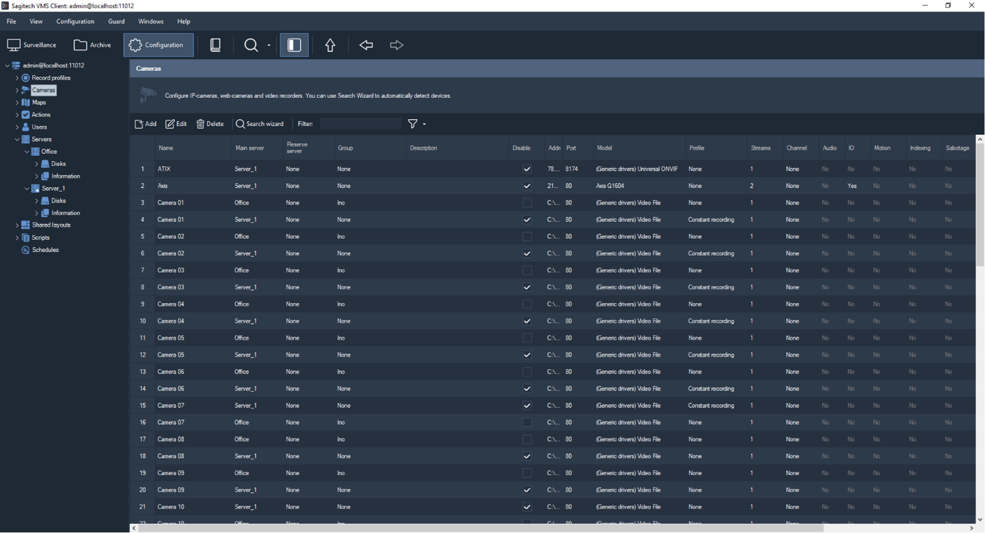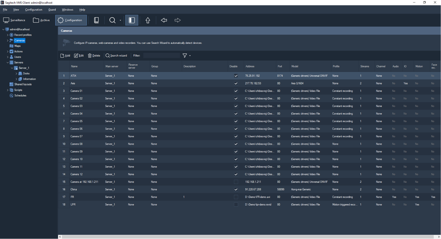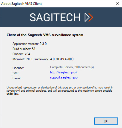 Sagitech Video Management System (further Sagitech VMS) is professional software for creation of systems of video surveillance on the basis of IP cameras. Sagitech VMS executes on Microsoft Windows operating systems and supports more than three thousand IP cameras of different makers.