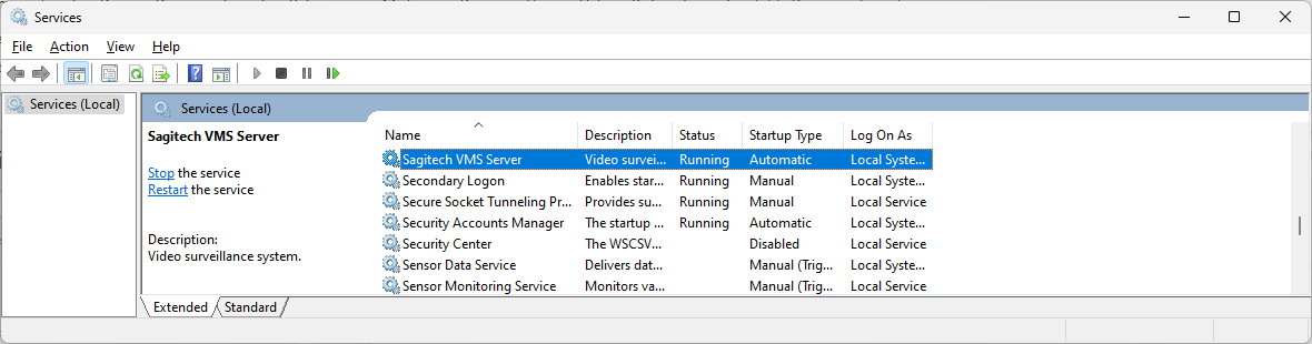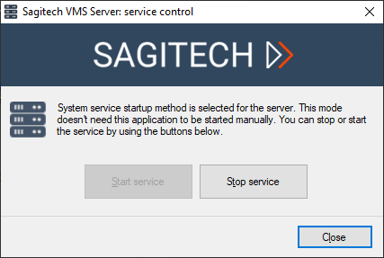 The application can be started from the «Start» menu (Start->All programs-> Sagitech Video Management System -> Utilities -> Sagitech VMS Server control) (Fig. 11.1.1),