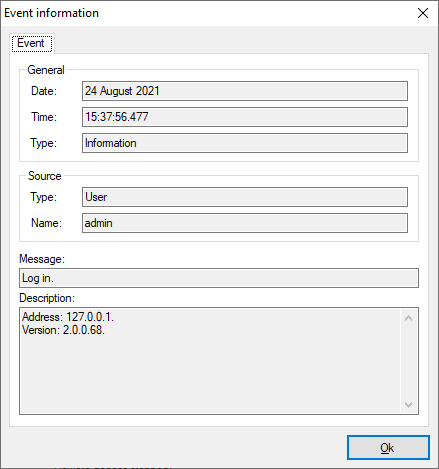 | Display the log | It displays the event log of the application. | |