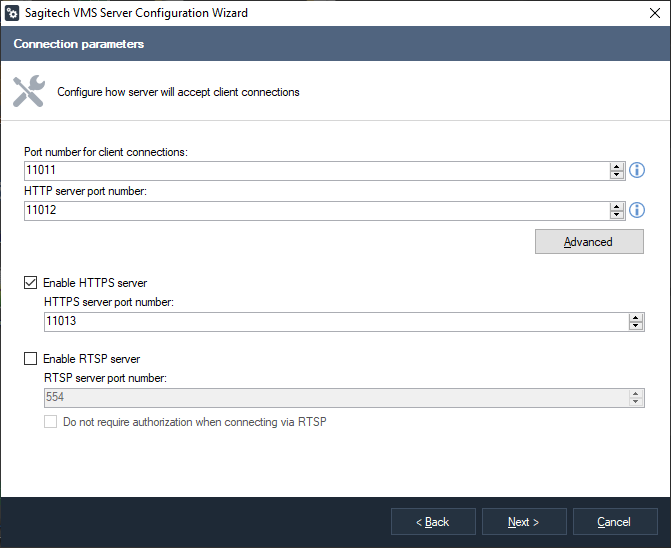 The first component is Sagitech VMS Server. The server is an application that performs all the work of receiving, processing, storing and distribution of information to clients from cameras in a background mode.
