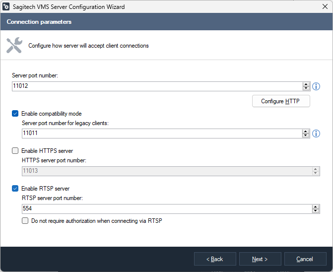 It is possible to connect to the Sagitech server with web-client. By default, the HTTP server that accepts connection data is inactive, but you can enable it using the Server Configuration Wizard. The wizard also allows you to set the port number on which connections will be accepted (by default, it is 11012). In order to connect to the server with web interface, you must enter the network address (or domain name) of the Sagitech server and the aforementioned port number separated by a colon in the browser address bar (for example “http://192.168.0.1:11012 ”), after which the authorization page will appear.