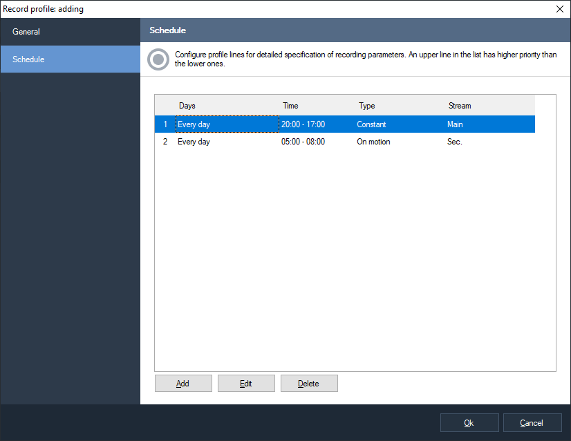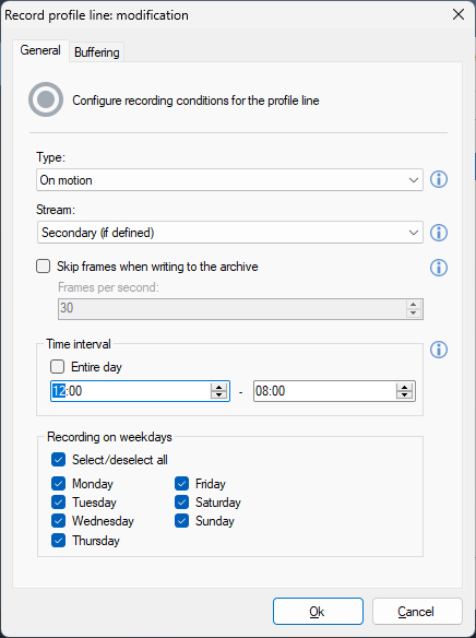 To use various parameters of reception of video (different video streams from one camera) for different conditions of monitoring/recording.